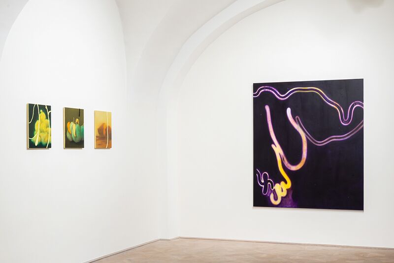 Die Kompositionen und technische Vielfalt locken zur Annäherung, um auch den Mittel- und Hintergrund zu erkunden: Abstraktes, fein strukturiert oder Gegenständliches, in subtiler Unschärfe gemalt. Der Farbauftrag – häufig Acryl und Öl auf Leinwand – ist vielschichtig und vieltönig, in zarten Nuancen teilweise fast altmeisterlich. Es ist delikate Malerei.